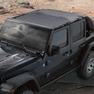 - Description: Sunbonnet Soft Top is solid Black. Installed when Hard Top or Soft Top are not installed. Provides shade for front seat passengers. Fits four-door Jeep Wrangler (JL).